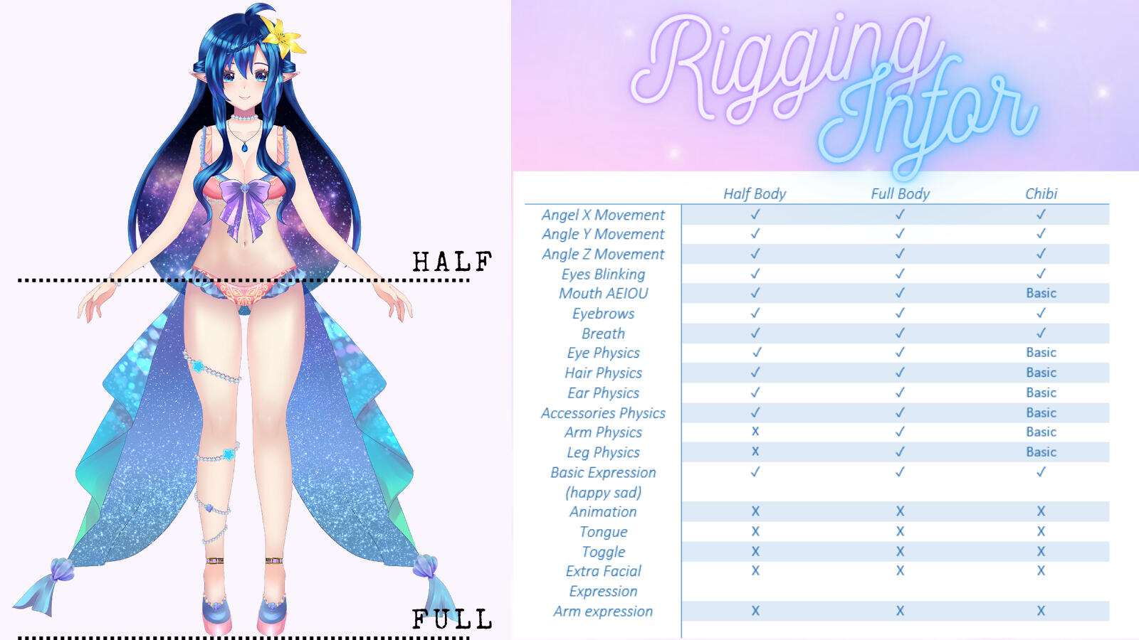 ❈ I have the right to post your commission on my social media and make it into my portfolio. If you want to keep the work private, please inform me first.❈ I might use your commission with watermark as an example for future commission sample and it will be upload at Pixiv, FB, Twitter, Instagram and DeviantArt (also other media I have)❈ By commissioning, you are agreeing to my terms. If you file a chargeback against me, all of your rights with the artwork are retracted and I will have the right to sell the copyrighted artwork to other potential buyers.❈ If such a case ever happened, you will be blacklisted from my commissions. Your name shall be publicly posted so others may be warned of your actions. To which I also have the right to file a legal complaint and I will have all the rights to the money paid.❈ NOTE: I have right to sell your work IF it is not paid.❈ more artwork you can find on my medias! ❈VTUBER/LIVE2D MODEL TERMSIncluded in the ready to rig file have the following parts cut:❈ Eye parts❈ Default mouth parts (open guide, close)❈ Animal ears/tail (if any)